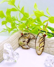 クロワッサンとバゲットの透き通るクリアが綺麗な切り絵ピアスです。