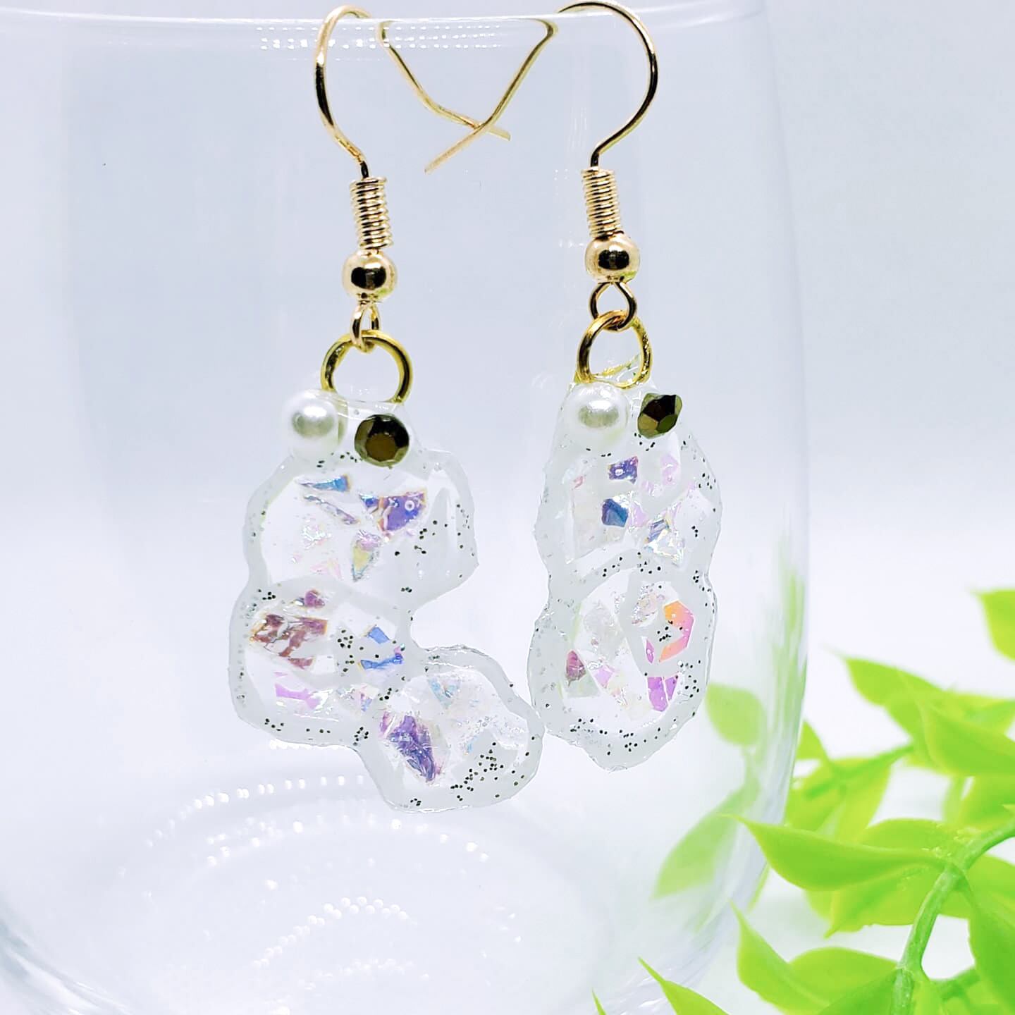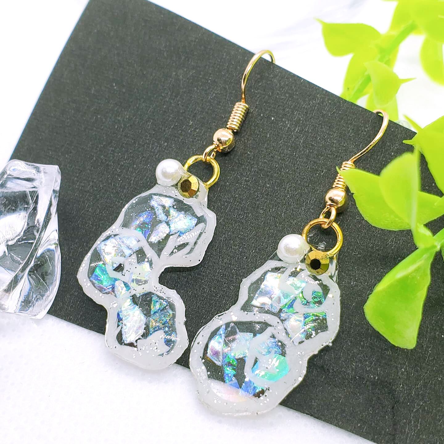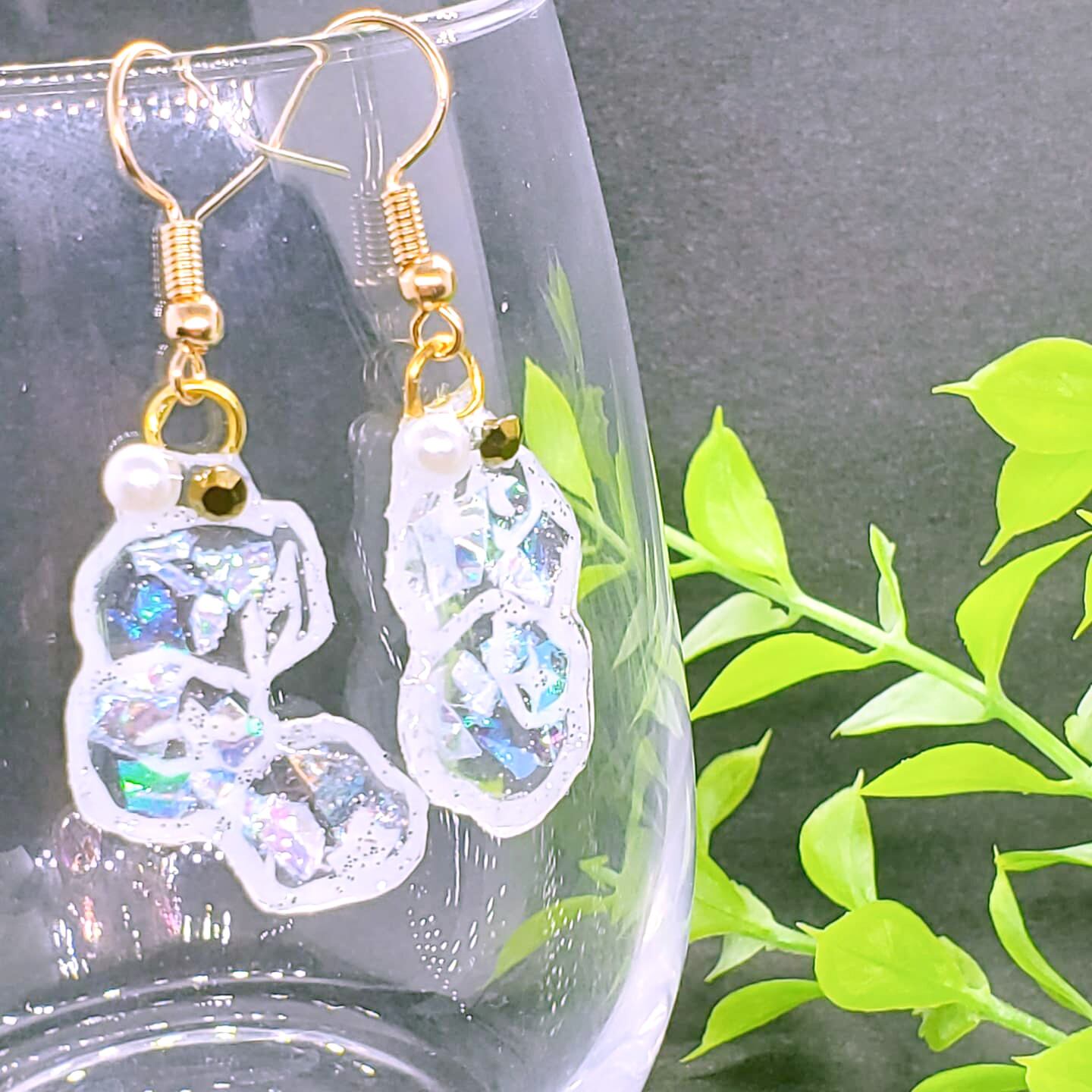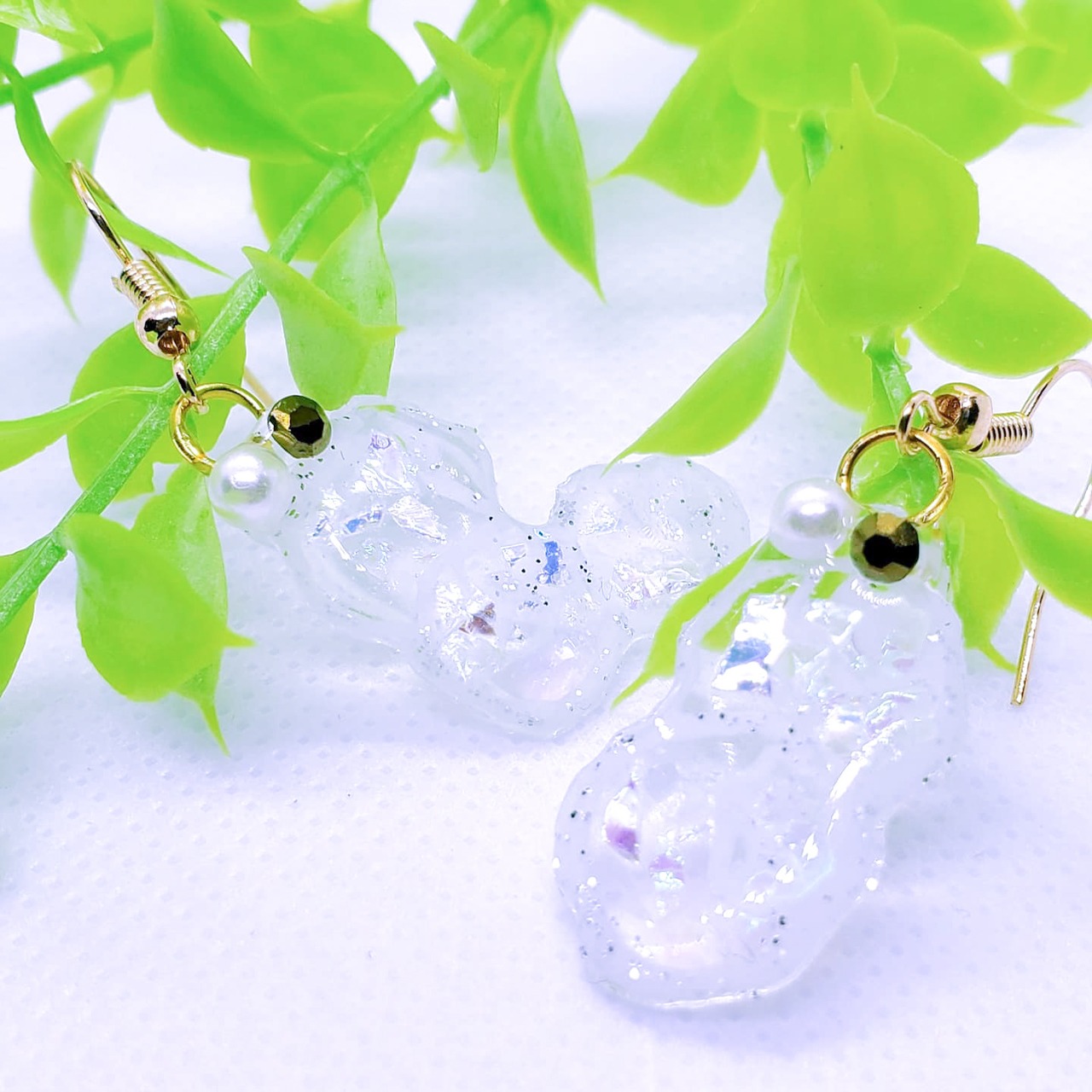 白いポップコーンの切り絵にキラキラ装飾をしたイヤーアクセサリーです。