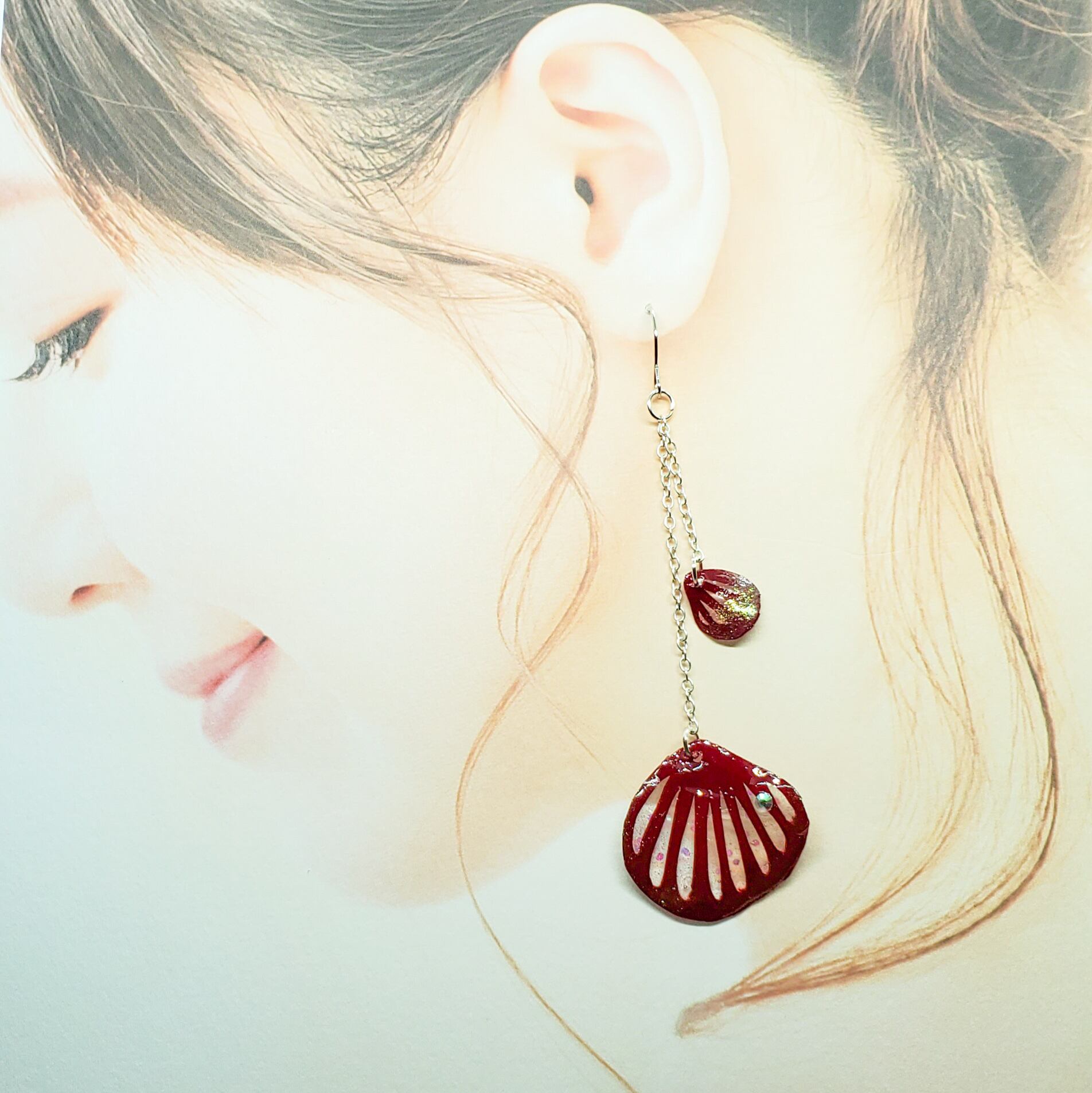 切り絵で作った花弁をチェーンで繋げたピアス/イヤリングです。