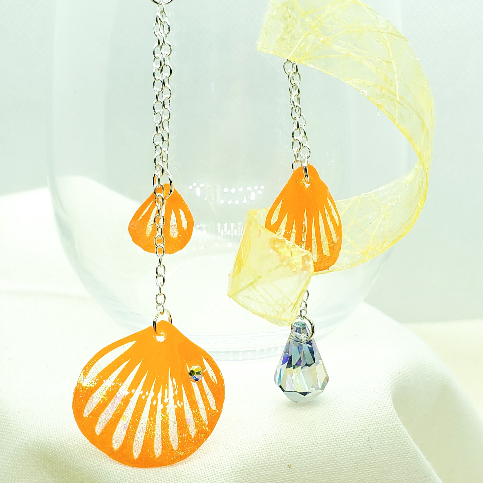 切り絵で作った花弁をチェーンで繋げたピアス/イヤリングです。