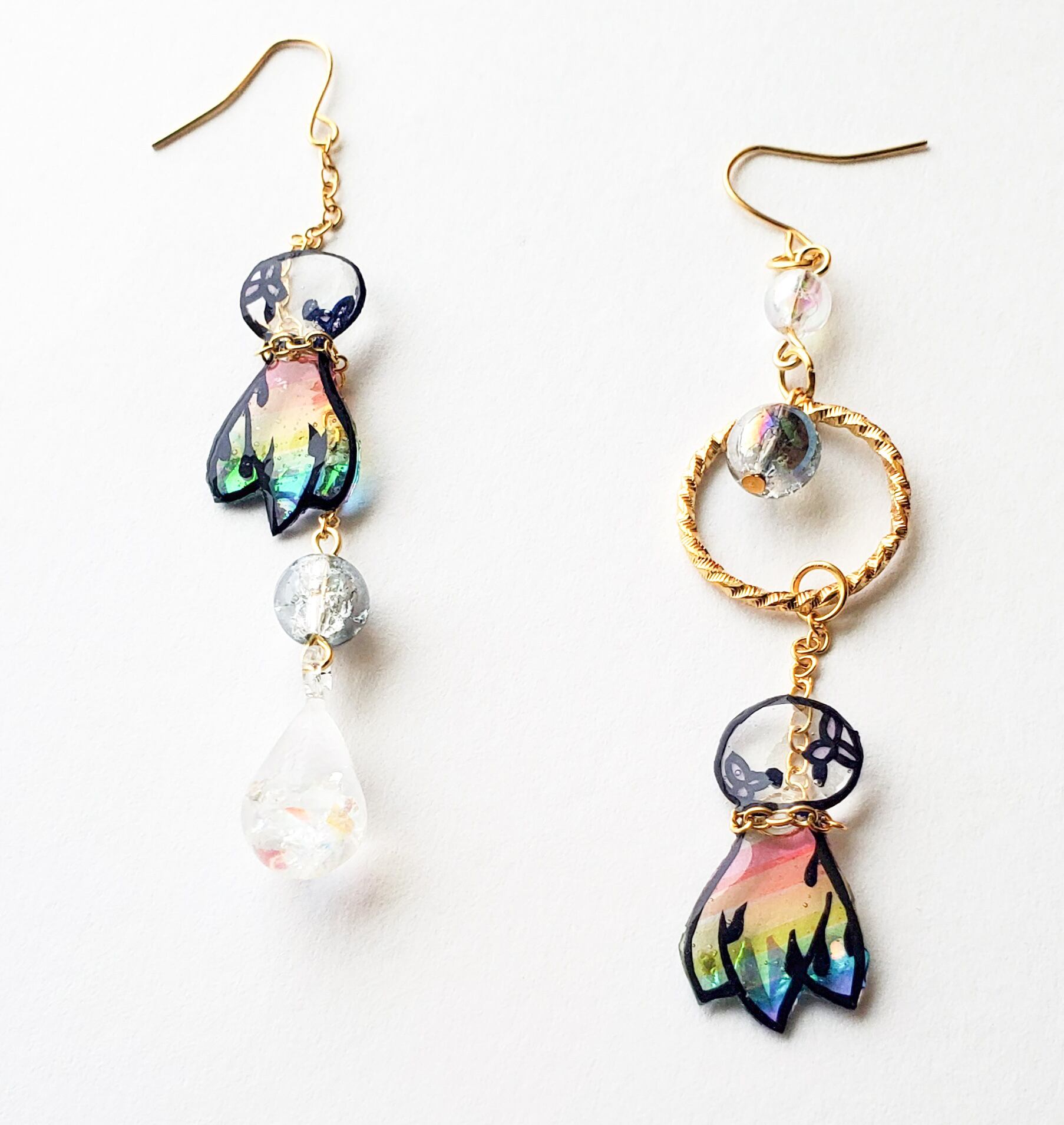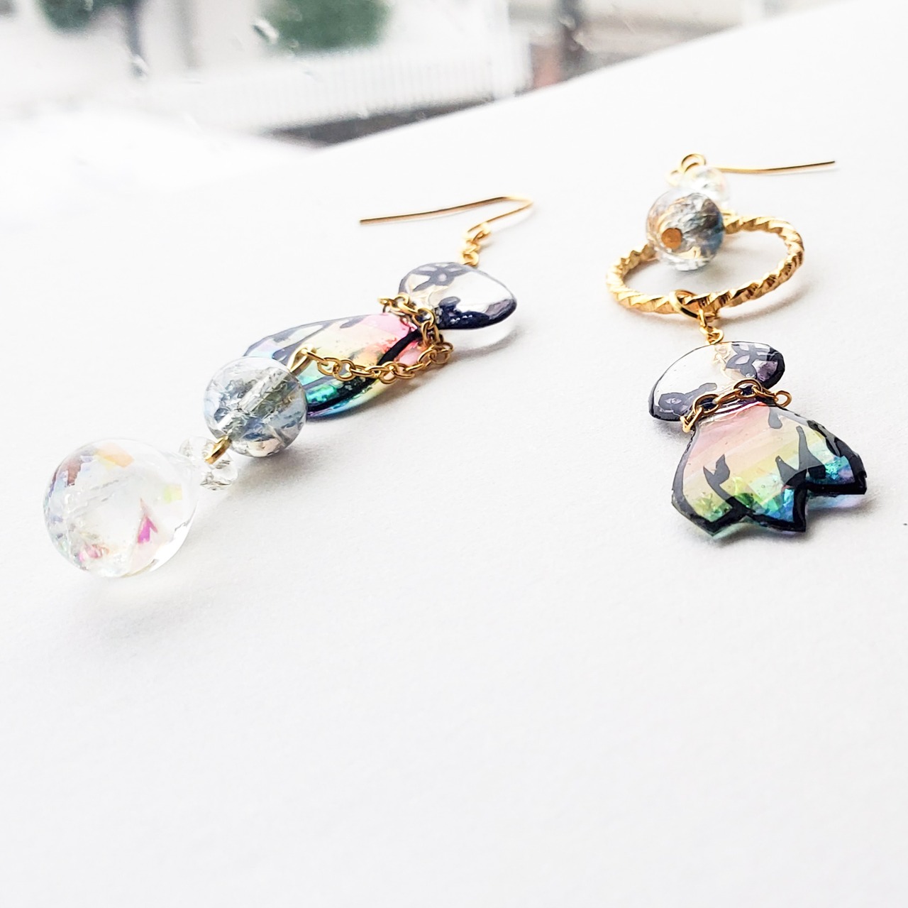 雨をイメージした雫はレジンで作成して、虹の欠片が入っています。