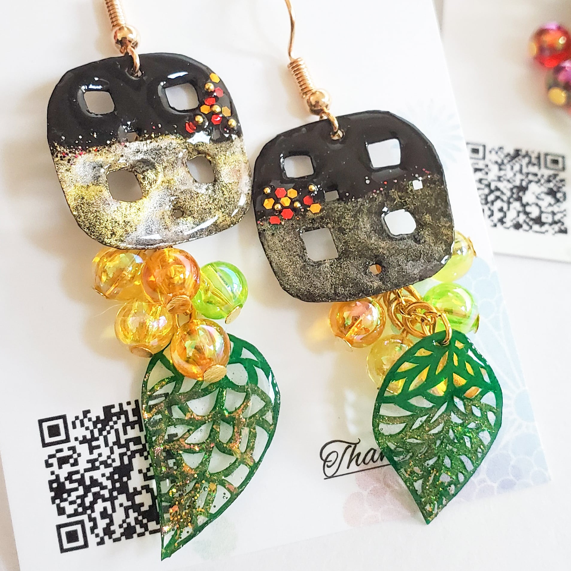 切り絵をしっかりとレジンで覆って、ある程度の強度を持たせております。日常生活で使っている分には強度に問題がないようにとは思っておりますが、もし作品が壊れてしまったりしましたら是非ご連絡ください。
